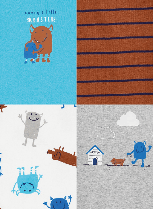 Bodys MANGA CORTA x 5 DINOSAURIOS AZULES