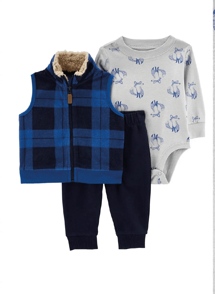 Conjunto 3 Piezas Chaleco Sherpa Cuadros Zorritos Azules
