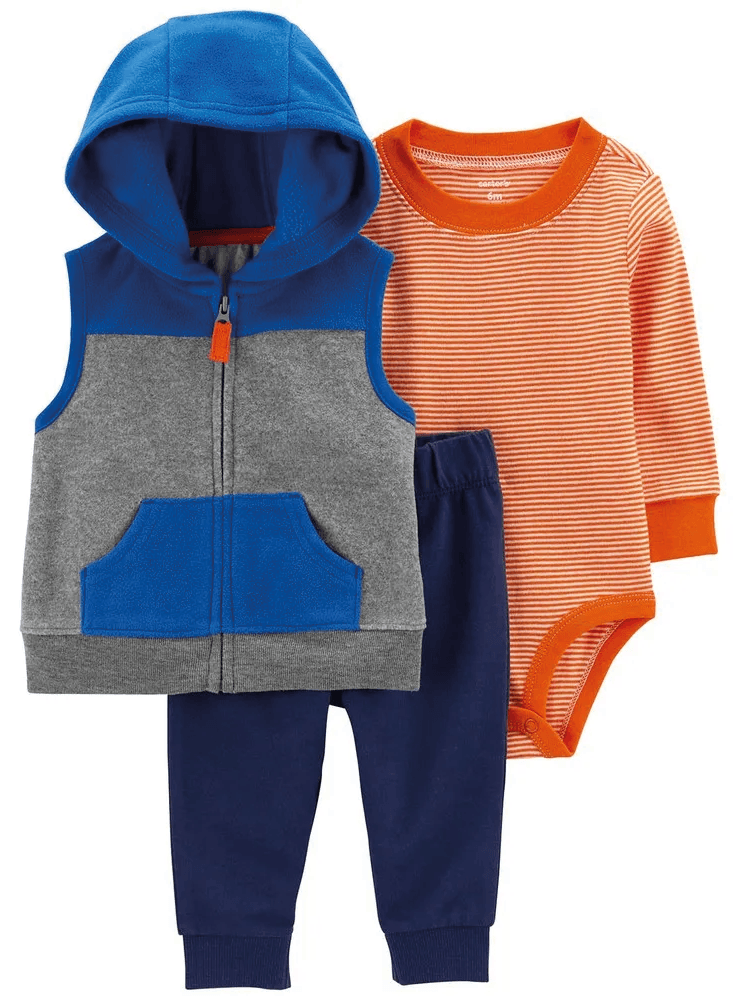 Confeccionado en un acogedor tejido polar, este chaleco combina con un body de manga larga y un par de leggings fáciles de poner.