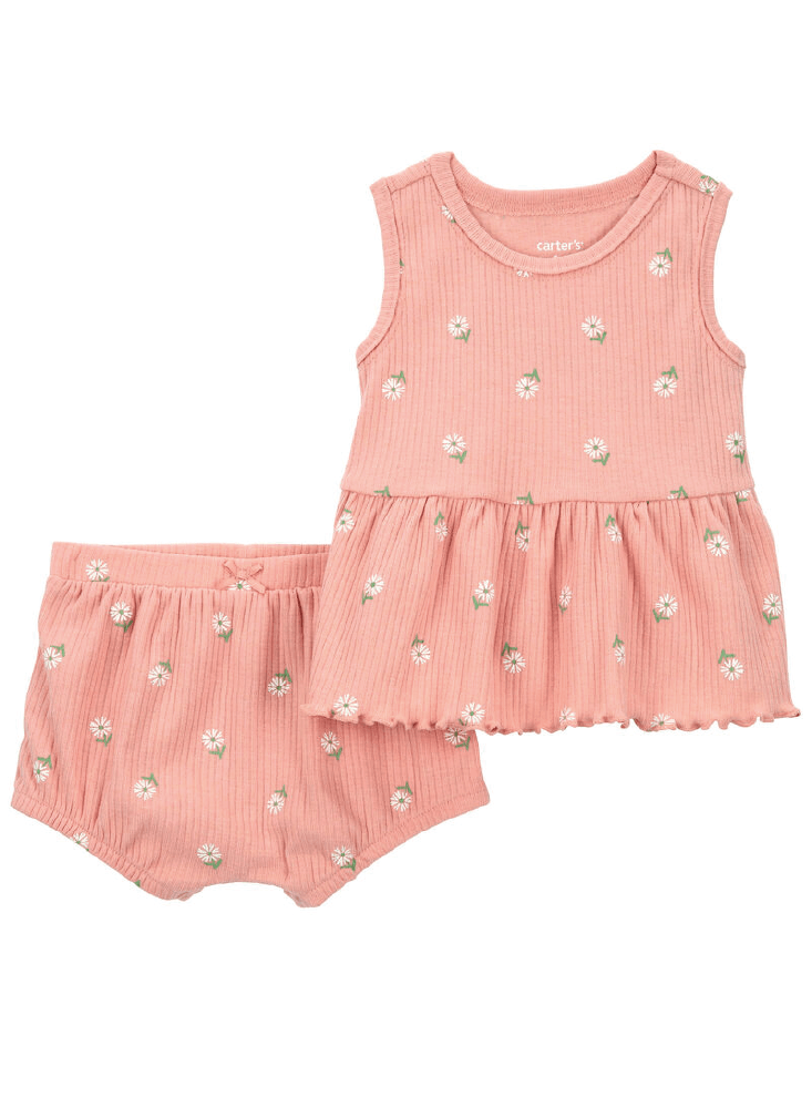 Hecha a juego, esta camiseta sin mangas combina con pantalones cortos fáciles de poner para un conjunto listo para usar.