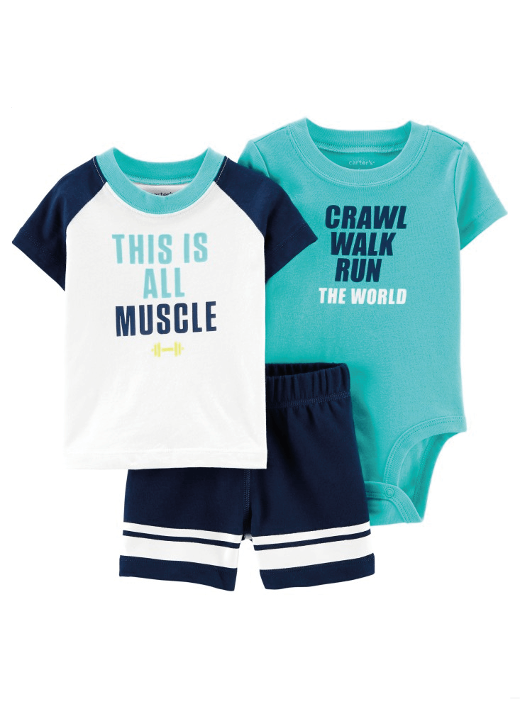 Confeccionado en algodón suave con tres lindas piezas en una, este juego es perfecto para abastecerse.
