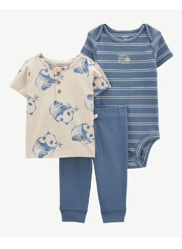 Diseñado con tres piezas en una, este conjunto se completa con un chaleco con cremallera, un body de manga larga y un par de pantalones fáciles de poner para una apariencia súper linda.