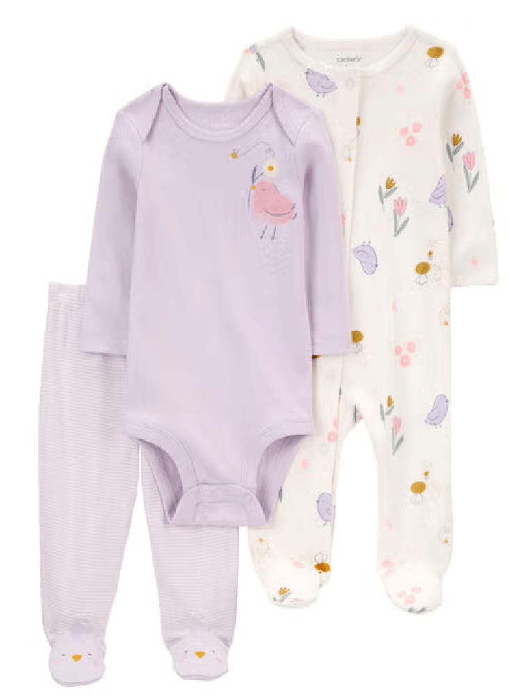 CONJUNTO 3 PIEZAS POLLITO LILA