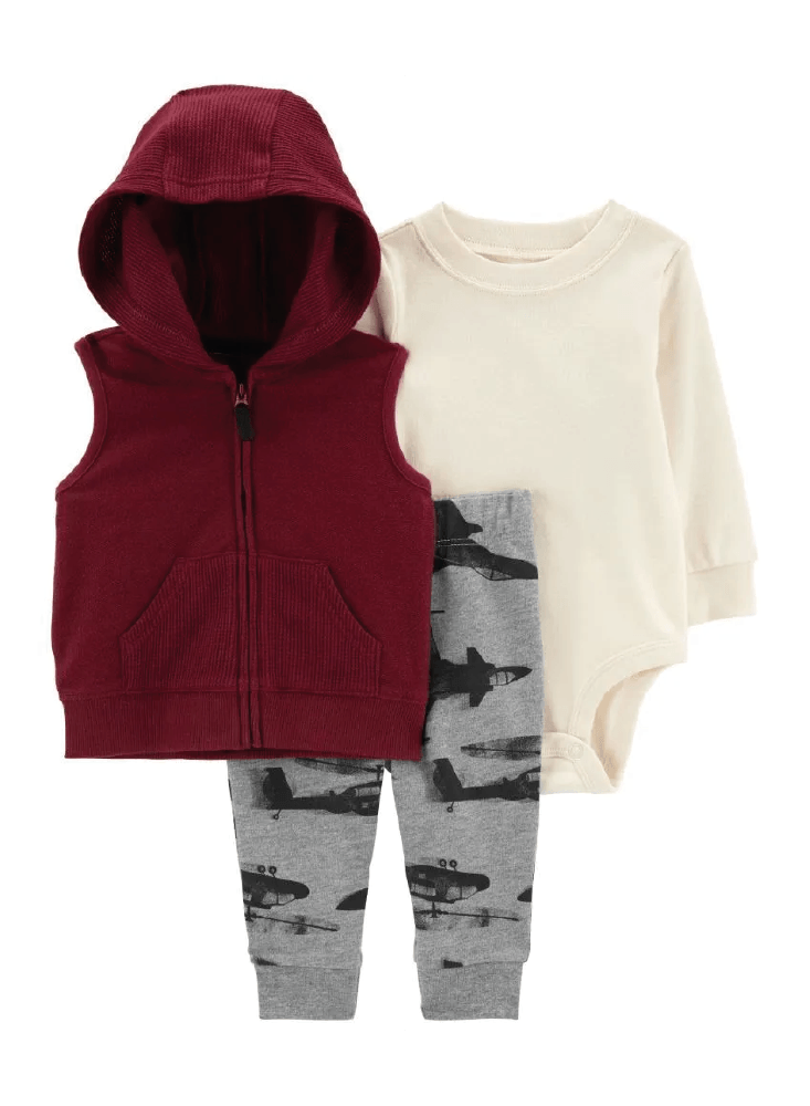 Confeccionado en un acogedor tejido polar, este chaleco combina con un body de manga larga y un par de leggings fáciles de poner.