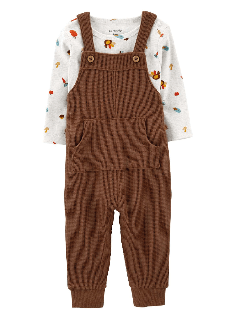 Diseñado con dos piezas especiales en una, este conjunto festivo se completa con una camiseta de manga larga para colocar debajo de un mono térmico.