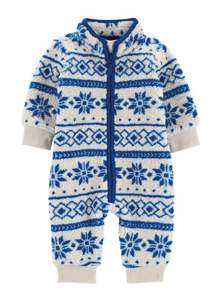 Confeccionado en sherpa, este mameluco prepara al bebé en un abrir y cerrar de ojos.