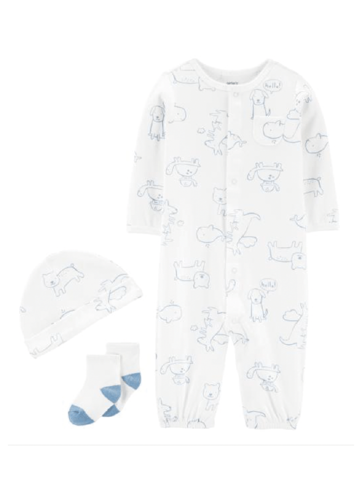 Pijama Enteriza 3 piezas Perritos Blanco