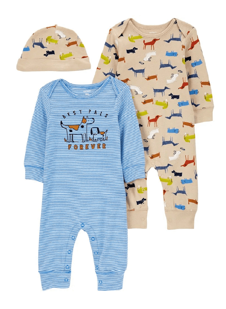 Confeccionados en algodón suave y acogedor con bonitos estampados, estos monos preparan al bebé en un instante.