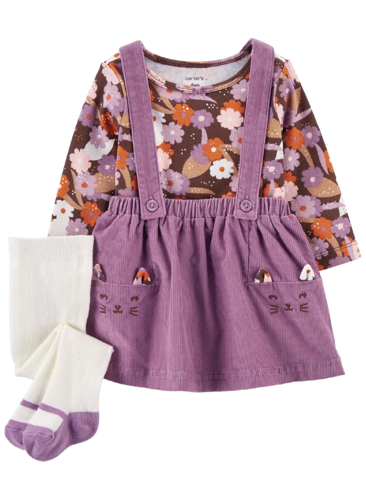 ¡Súper lindo y femenino, este conjunto incluye un lindo jersey de pana, una camiseta de manga larga y medias para completar el look!