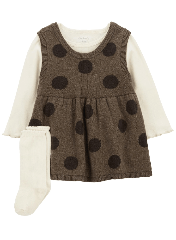¡Súper lindo y femenino, este conjunto incluye un lindo jersey de pana, una camiseta de manga larga y medias para completar el look!