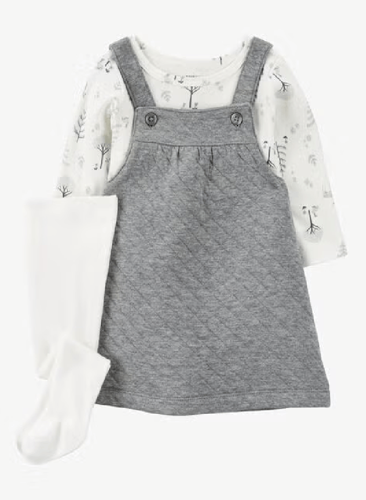 ¡Súper lindo y femenino, este conjunto incluye un lindo jersey de pana, una camiseta de manga larga y medias para completar el look!